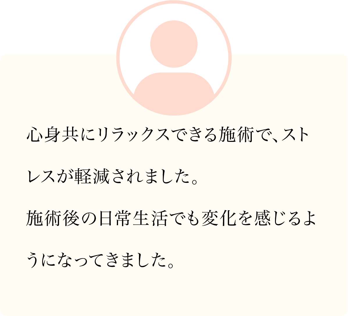 自律神経のケアに特化した施術で、心身のバランスに調和を心と体を一体としてとらえ、